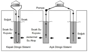 Peki kuyular nasıl jeotermal enerji santrallerine dönüştürülebilir? Bunun için üç tane yenilikçi yöntem sunulmuştur. İlk yöntem, açık döngü sistemleridir. Açık döngü sistemleri, temiz yeraltı suyunu doğrudan yakındaki bir akiferden iç mekan jeotermal ısı pompasına aktarır. Su sistemi terk ettikten sonra, ilk kuyudan uygun bir mesafede bulunan bir tahliye kuyusundan geri atılır. Petrol ve gaz üretiminin son aşamalarında, üretilen sıvılardaki su içeriği arttığında, bu tuzlu sulardaki enerji jeotermal enerji için giderek daha fazla kullanılabilir.2 İkinci yöntem ise kapalı döngü sistemleridir. Bu sistemlerde, gömülü veya batık plastik borular aracılığıyla sürekli olarak bir ısı transfer çözeltisini dolaştırır. Döngü sadece bir kez doldurulur ve orta miktarda çözelti gerektirir. Aynı çözelti kapalı bir döngüde sürekli kullanılır. Isı değişim kapasitesinin sınırlı olabildiği durumlar olmasına rağmen yeni teknolojiler ile verimliliği arttırılabilen bir yöntemdir.3