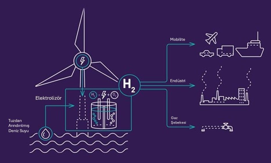Araştırmacılar, açık deniz (off-shore) rüzgar türbinleri tarafından üretilen elektriği kullanarak suyu ayrıştırıp temiz hidrojen üretimini amaçlamaktadır. Bu hidrojen üretim şekli özellikle ABD Atlantik Kıyısı ve Meksika Körfezi’nde ekonomik açıdan rasyonel görülmektedir.2