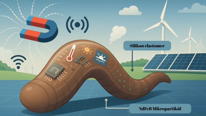 Çalışmada kullanılan robotun en dikkat çekici yönlerinden biri, yapımında tercih edilen malzemelerin özel tasarlanmış olmasıdır. Robotun ana yapısı, balmumu kaplı neodimyum-demir-boron (NdFeB) mikropartiküller ile silikon elastomerin birleştirilmesinden oluşur. Bu malzeme kombinasyonu, robotun hem manyetik olarak kontrol edilebilmesini sağlar hem de esnekliğini koruyarak dar alanlara uyum sağlamasına imkân tanır. Özellikle balmumu kullanımı burada çok kritik bir rol oynar. Çünkü balmumu belirli bir sıcaklıkta (~45°C) eriyerek içindeki manyetik partiküllerin yeniden yönlendirilmesini mümkün kılar. Bu sayede robot, şekil hafızalı malzemeler gibi yeniden programlanabilir hale gelir. Diğer çalışmalarda kullanılan polietilen glikol (PEG) veya polikaprolakton (PCL) gibi malzemelere kıyasla balmumu, daha düşük sıcaklıkta çalıştığı için yumuşak polimer yapıya zarar vermez. Bu da robotun çok kez yeniden şekillendirilmesini mümkün kılar.